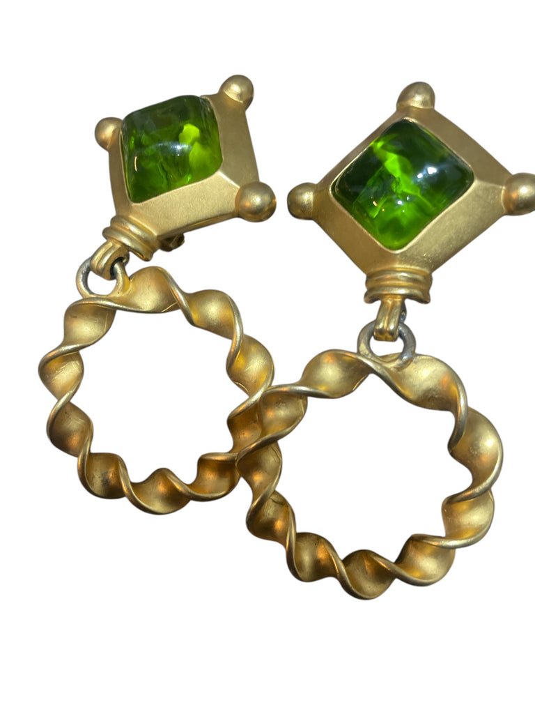 Karl Lagerfeld 1980s Gold Plated Green Stone Dangle Earrings
